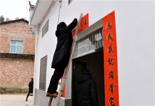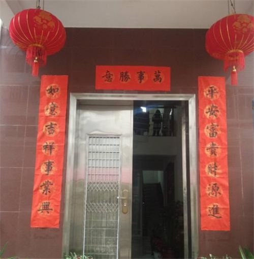 3、在贴对联时千万不能把上下对联贴反了,一般情况下贴对联面对大门时,右边应该贴上联,左边贴下联。而对联一般分好几种方法来区分,一个是根据上下联最后的一个字音调平仄进行区分,一般上联是仄音,下联为平音。比如说和顺一门有百福,平安二字值千金。