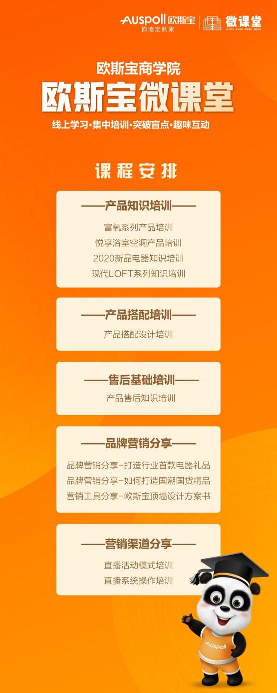 欧斯宝商学院结合了线下和线上两种培训方式。线上、线下双管齐下,系统解决终端销售痛点,让所有欧斯宝人成为一名合格、专业的吊顶人。