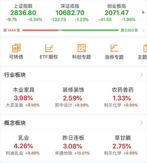 板块方面,木业家具、装修装饰、农药兽药、乳业、草甘膦等板块领涨!