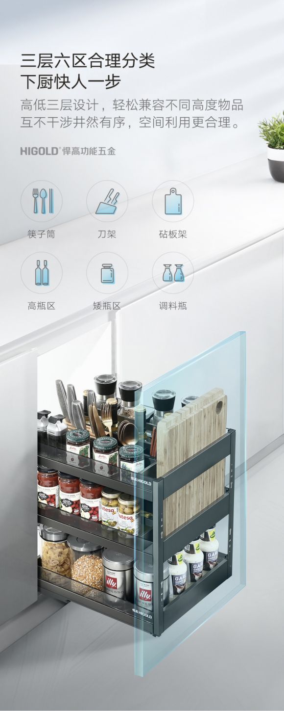 厨房里的烟火气,悍高厨房收纳科技帮您“装”起来。