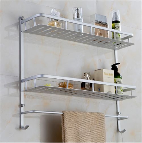 2、还有一种就是我们比较多见的太空铝材质收纳架,这种收纳架非常轻巧,而且还不容易出现生锈不挂水渍,就是表面层有水干的也非常快,太空铝材质的收纳架一般在设计上十分典雅,属于一体成型,板面平整而且坚固耐用,造型简约大方。