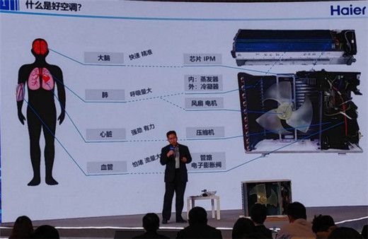 在现场,海尔空调研发工程师付裕也对拆开后的海尔空调6大核心部件进行了形象化的讲解。
