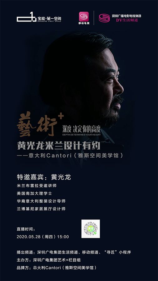 2020年5月29日,《艺术+》黄光龙米兰设计有约第一期将走进宝能·第一空间雅斯空间美学馆,探讨Cantori如何将意大利风格和地中海沿岸的文化完美结合,并传递到世界各地。