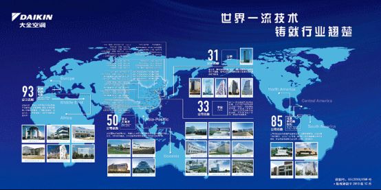 作为一家拥有近百年历史的世界品牌500强企业,大金通过不断组建研发中心、投资建造生产基地进行全球布局,秉承“从全球角度去思考和行动”,开展全球化企业合作并购战略,从而巩固企业专项技术优势、区域市场优势。