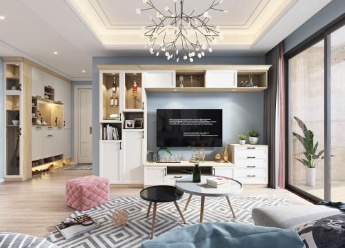 客厅是一家人的情感交流空间,温暖柔和的配色、品质优美的家具可以提升居家品味的功效。不对称的柜体设计和高低错落开放格,增加了空间的设计感。玻璃柜门+玻璃层板,增加柜子通透性,实用与颜值双重具备。