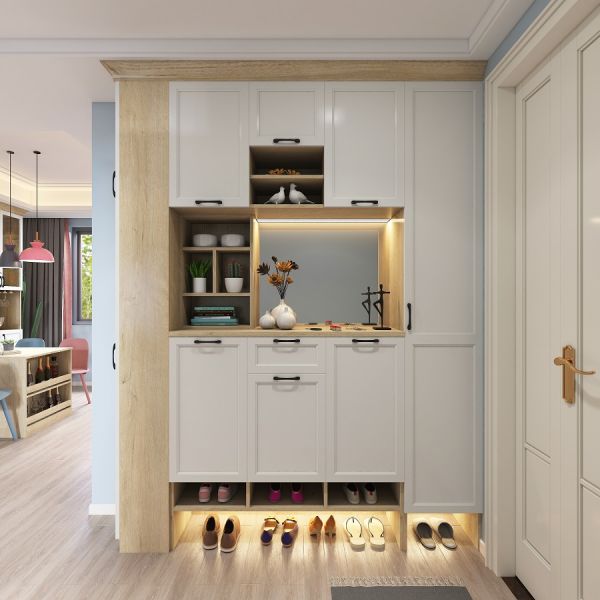 玄关部分开放区、封闭区、半开放区相结合,错落有致,不沉闷,增强空间通透感。暖白色调清新自然,每天归家都有好心情。