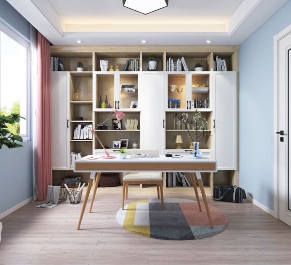 腹有诗书气自华,有间书房,可抵岁月悠长。开放区、封闭区、半开放区相结合,玻璃掩门书柜和大面积的开放区增强空间通透性,让每本书一览无余。