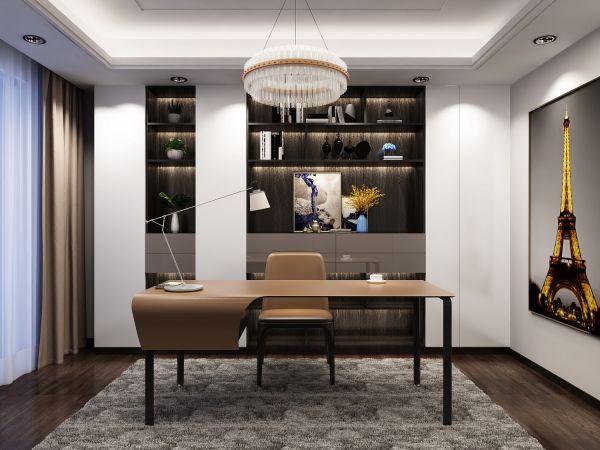 阅读工作区是多数家庭不可缺少的部分,偶尔的加班、安静的阅读、休闲时游戏等,超大容量收集,方便拿取。白色柜门与大气的黑色开放收纳区,再搭配咖色的抽屉,简约时尚,充满质感。