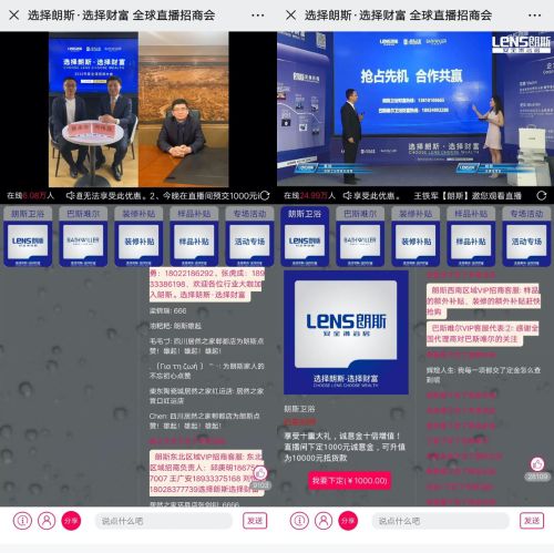 其中,4月17日,居然之家与朗斯联合举办的“选择朗斯,选择财富”2020年度线上招商大会,两位家居行业的大咖居然之家集团总裁王宁和朗斯卫浴董事长向伟昌联手坐镇直播间,数据显示,本次线上招商活动共计吸引51.5万人观看,累计互动超26万人次,签约客户达368单。朗斯卫浴表示,此次与居然之家强强联合,发挥了各自在家居领域的优势资源,打造一场家居行业线上直播招商的盛宴。