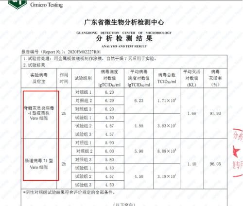 经权威报告验证,润立抗病毒能有效杀灭“手足口病毒、小儿麻痹症、流感病毒”。