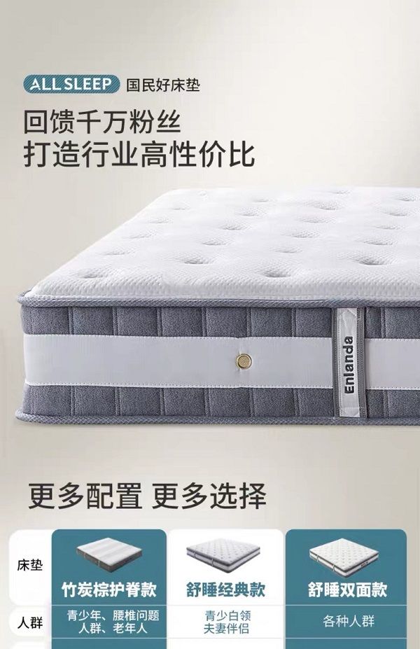 通过市面上与芝华仕同一品牌阵营的同等产品横向对比可以得知,其它品牌的床垫展现出来的“高价低配”特点,与芝华仕品牌打造的“性价比”特色有着本质的区别。相同价位的床垫产品,芝华仕在技术含量、原材料质量、外观设计、产品整体构造等方面具有明显的精工细作的特点,而相同技术含量下的同类产品,芝华仕又可以凭借强大的企业实力,以及每年几百万件产品规模化的生产,实现资源的最优化利用,对单位产品成本合理控制,因而在市场上才能够将价格打下来,让消费者得到更大的实惠。