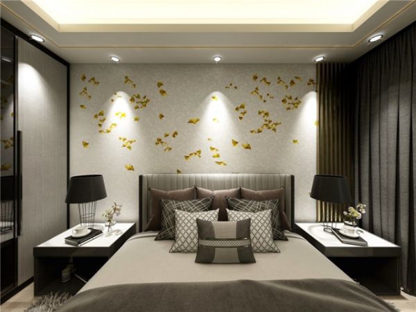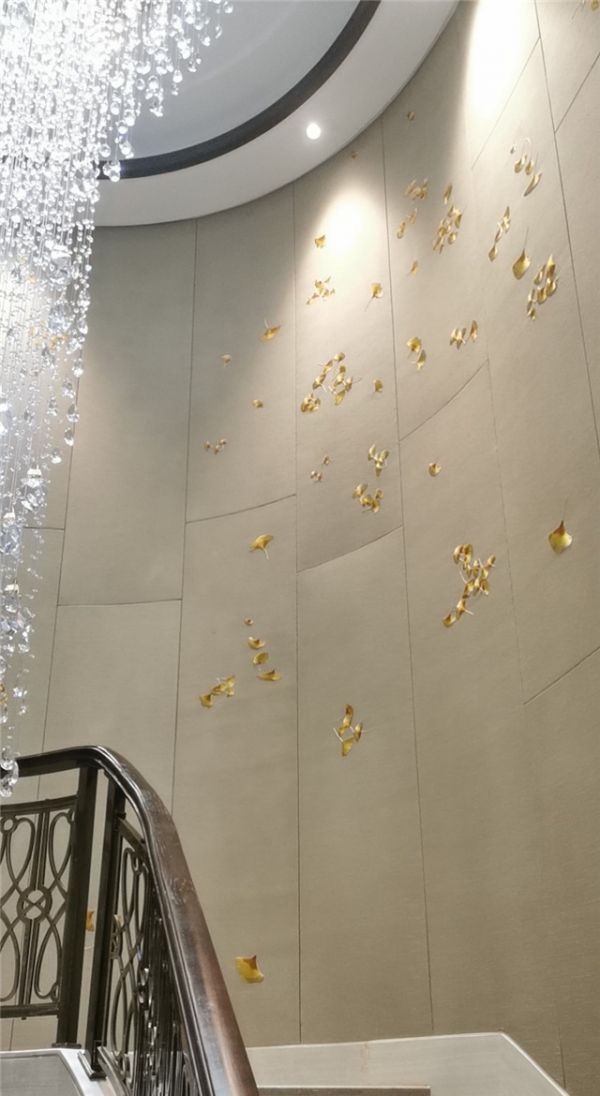 全墙用了近40块刺绣《银杏》硬包,60余平同色底布硬包,才能拼凑成如此的景象。