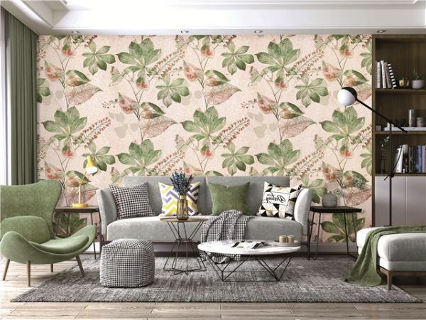 小碎纹也是田园风格的一种常用元素,搭配上绿叶的点缀,营造出一种浪漫的田园感觉。这款图案的无缝墙布适用于卧室和客厅,对于女生来说也是一个不 错的选择。