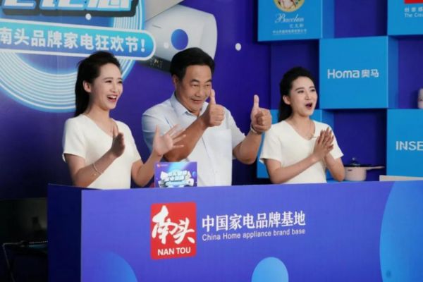 南头镇党委副书记、镇长蓝海斌(中)为南头家电产品代言