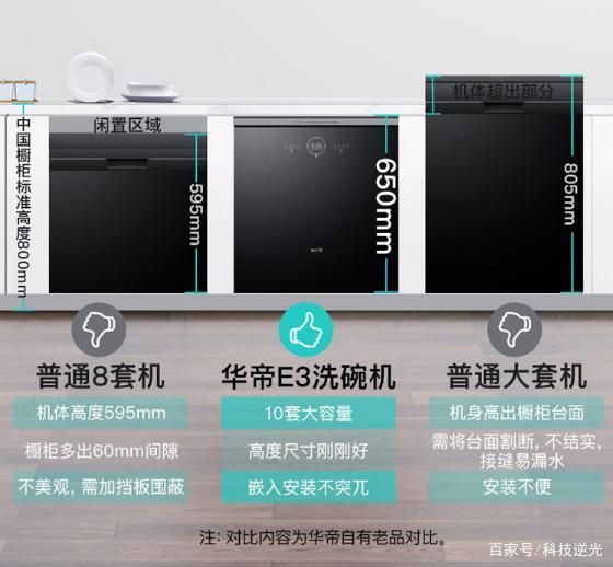 另外,华帝干态洗碗机E3系列型号将机身高度调整为650mm,这个高度与中国橱柜的标准相一致,可替换常规尺寸的消毒柜,在安装施工方面,免除了改装橱柜的麻烦,这也是这款产品人性化设计的特点之一。