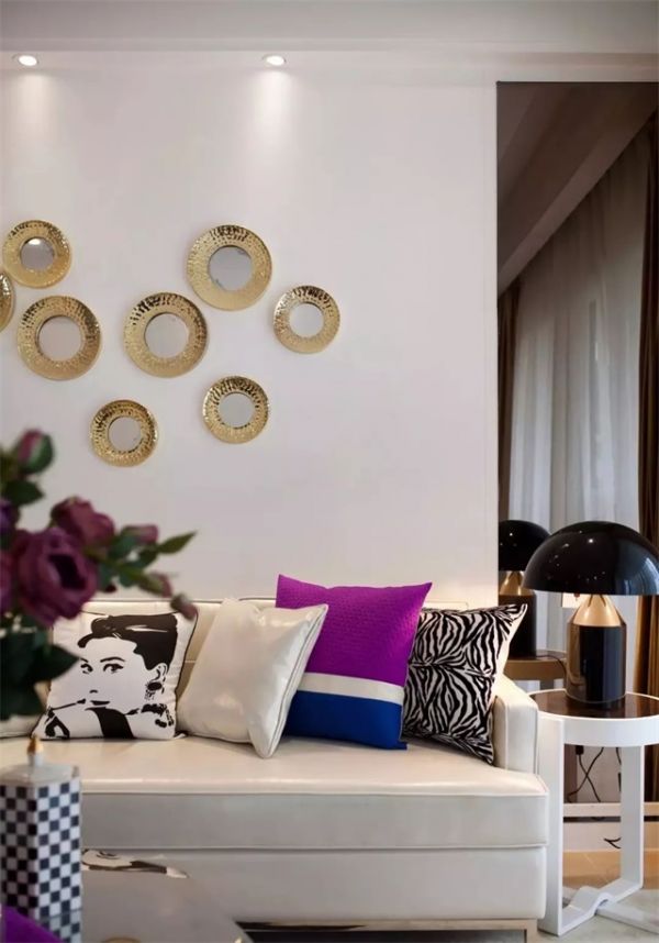 在客厅里,一点点紫色和黄色的搭配映衬着中性的背景,给原本平淡无奇的环境注入了生机。