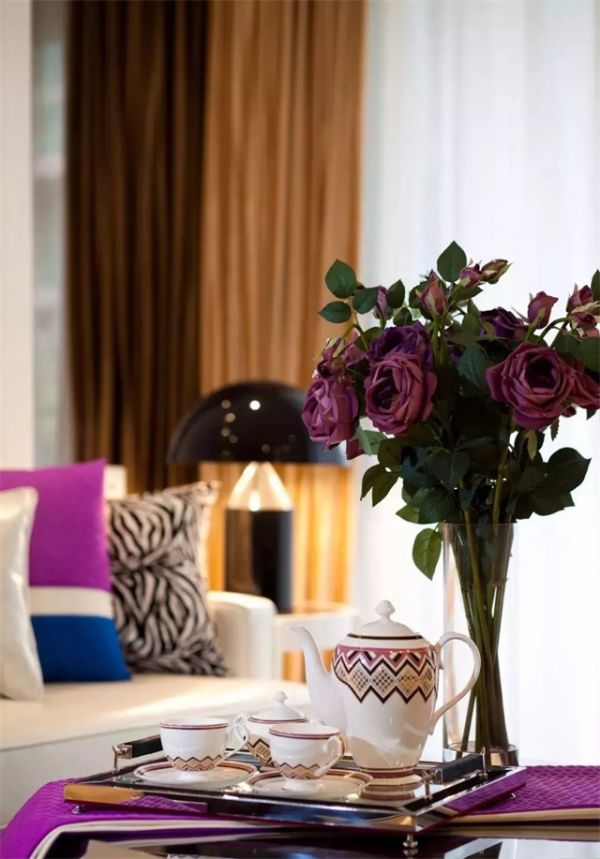 室内柔和的色调加上平衡的紫色创造了一种令人难以置信的舒缓和优雅的美感。
