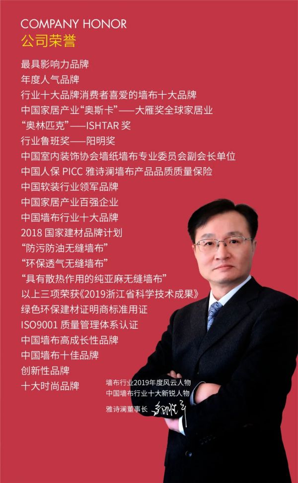 2020年,作为墙布行业的探索者,雅诗澜仍将不忘初心,牢记本心,以更广阔的视角砥砺前行。目之所及,雅诗澜将在行业中继续开拓创新,用爱打造好品牌,用坚持铸就成功,用心服务雅诗澜的广大合作伙伴,助力雅诗澜大家庭在这个行业健康持续发展,为墙布行业贡献自己的一份力量,成为中国墙布行业的先锋力量。
