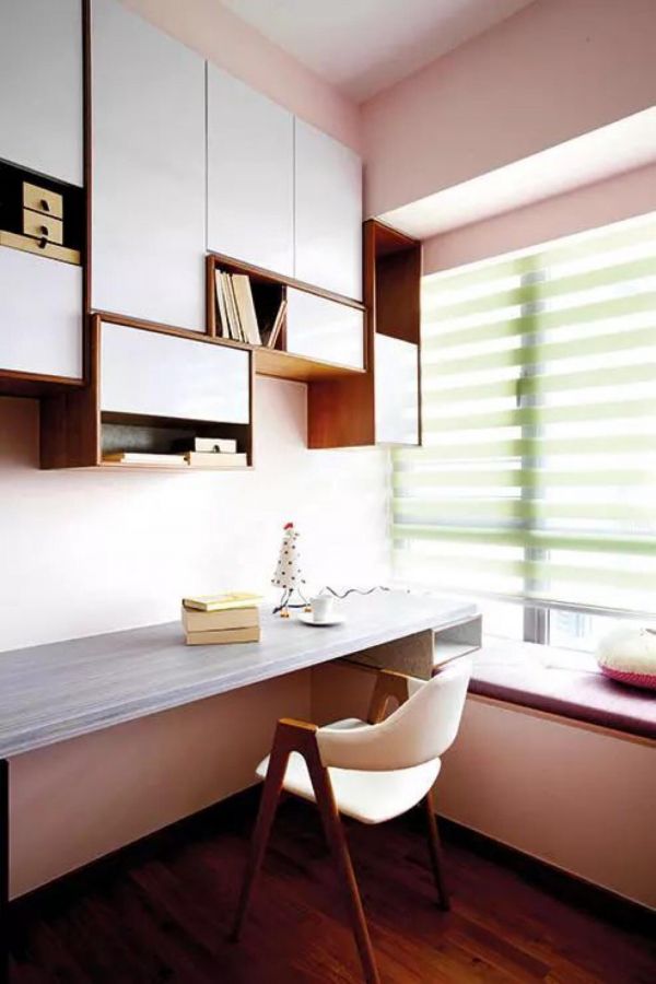 家里没有独立的书房,就利用飘窗打造一个简易工作区/学习区,采光好,视野佳,抬头就见景,心情也变好了。