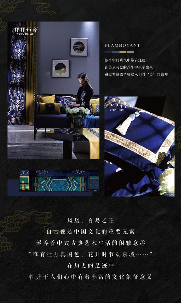 客厅家居空间,同样讲解对称之美。无论是空间构型,还是软装与家具讲究方正造型朴素优美,色彩和谐稳重,给空间一周安静与秩序,让居住者体验中式独特的平衡、稳定之美。藏蓝色的庄重霸气点缀的帝王黄定性主题,牡丹花与孔雀纹样融合中式传统纹样,代表着满满的幸福,它象征着高贵端庄。富贵让奢华的中式意境中透露出婉约温柔的气质。
