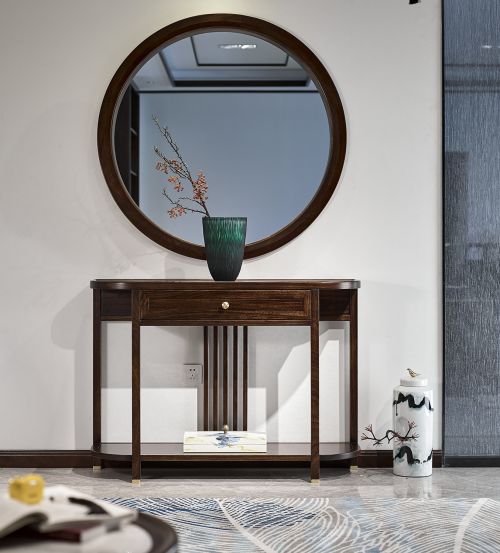 进口酸枝木质感厚重,打造的家具有端坐一方的气势,简约而不失韵律感的木纹线条则流露着随遇而安的闲适,柔和而舒适,平添几分自在心境,张弛有度地表达着空间不俗的气度。