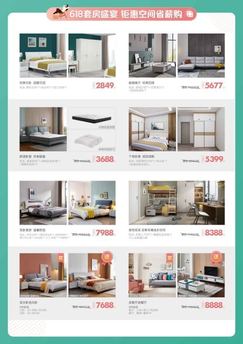 一年一度的618如期而至,作为年中最重要的促销节点,线上线下商家纷纷促销让利,拿出吸引力十足的年中优惠。今年618,全友推出“首届全屋文化节”,两室两厅全屋购齐仅需22800元;22平米全屋定制16800元,六大空间全屋定制帮你一站搞定,真正做到聚划算、聚省心、聚实惠。此外还有超值单品、精品套房优惠:优选大床668元,布艺沙发仅需1980元;买主卧送次卧、买客厅送餐厅。让利诚意满满,只为让消费者在这场规模空前的大促中更愉快的“买买买”。