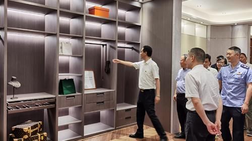 在整木体验馆,顾总向大家讲解整木定制衣柜的设计理念和制造工艺,奢华大气的风格兼有贴心实用的起居设计,颇受领导赞许。