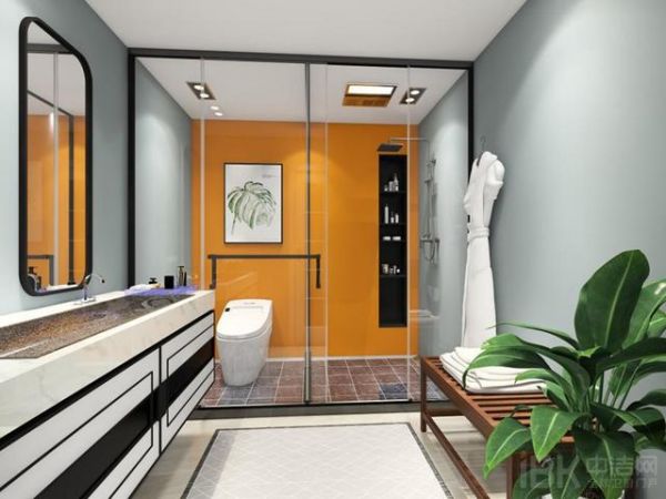 浴室柜与浴缸之间添加竖楣,保证了卫生间干湿分离的效果。