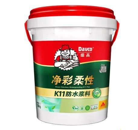 德高K11净彩通用防水浆料(18kg/桶)选用净味配方,安全环保,抗渗性能好,可用于砂浆、混凝土结构的防水处理。