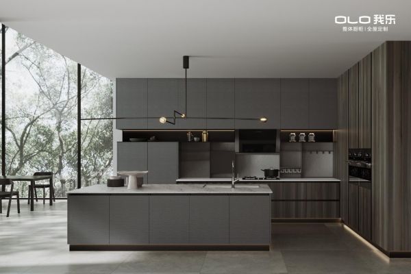 我乐家居“巴斯蒂昂”整体厨柜系列共含8款独特花色,是我乐主推新品里花色最多最齐全的。青灰砂、青陶砂表面几何肌理,由欧洲进口钢板高温压制而成,触感鲜明别致;古铜金色调沉稳内敛,另具细腻颗粒质感;摩恩胡桃、玄青乔木等5款大木纹渐变花色,经哑光压纹处理,更贴近天然原木肌理,返璞归真,给家增添了艺术的力量与自然的气息。