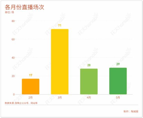 陶企直播活动主要集中在3月(71场),3月15日、5月1日、5月20日等节日都是陶企扎堆直播的日子。
