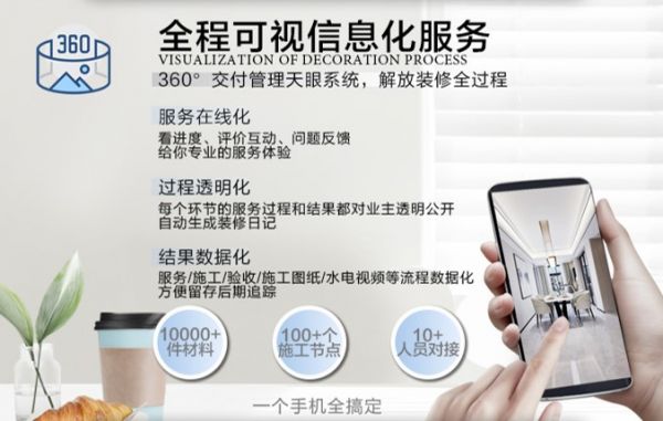 说到东易日盛自主研发的家装“黑科技”,就不得不说一说其中的360°交付管理天眼系统。该系统可为业主提供装修全程可视信息化服务,通过三大特色为业主解放装修全过程。第一大特色是服务在线化,将装修过程中的所有进度、真实评价互动、问题反馈统统移至线上,让业主不用再频繁跑施工现场盯进度,仅需一部手机便可享受最专业、省心的家装服务体验;第二大特色是过程透明化,只有信息对等、透明公开才能使装修公司与业主双方真正产生信任,东易日盛将装修过程中每个环节的服务过程和结果全部对业主透明公开,并将其自动生成装修日记以便日后维护管理导出数据;第三大特色也是科技家装理念中较为核心的一点:结果数据化,使用360°交付管理天眼系统将装修过程中的服务、施工、验收、施工图纸、水电视频等相关流程全部数据化存储,方便留存后期追踪。东易日盛提出的科技家装理念并不是为博取眼球而制造的营销噱头,而是通过“真枪实弹”的基础数据与360°交付管理天眼系统相结合,使得10000+件材料、100+个施工节点以及10+位人员对接仅需一部手机便可全部搞定,切实提升客户体验真正做到解放装修全过程,让每一位客户都可以安心、省心的交付验收入住新家。