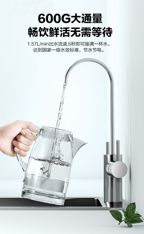 净水机其实在我们的生活中扮演着非常重要的角色,比如洗菜、洗水果、煮饭、洗脸使用净水会比较安心,直饮、泡奶、沏茶使用纯水才更加健康;如此频繁的使用也对净水机的流量提出了要求,只有净化速度够快才不会尴尬。惠而浦零陈水净水机R600C90采用净水、纯水双出水设计,拥有600G大通量,1分钟出水达到1.57L,6秒即可接满一杯水,这一速度完全能满足烹饪和日常所需,为健康生活带来无限便捷。另外,这款零陈水净水机使用起来也非常方便,145mm纤薄机身、370mm黄金高度不会占用太多厨下空间;前抽滤芯设计,无需移机即可实现三秒轻松换芯,为用户节约换芯成本。