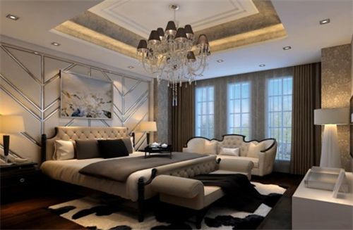 2、卧室的设计一定要有温馨,宁静感。一个静字的空间才能给到我们休息的保障,而且卧室它本身也就是一个私密的城区,因此在装修时一定要多考虑它的静。这个主卧整体的设计线条感非常不错,还增加了白色的沙发,在休息之前还可以喝一杯红酒或者是看看书,享受睡前的安逸时光。