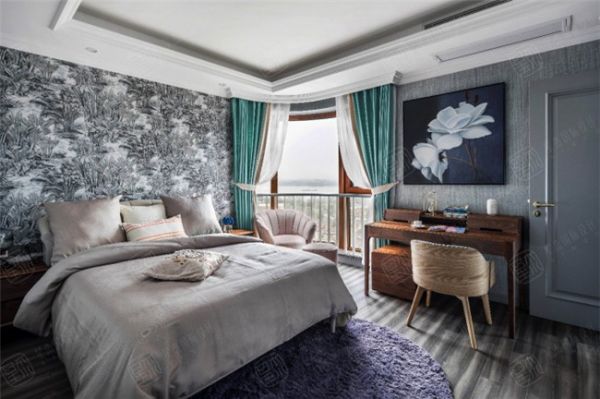 除去纷杂繁复的色彩和多余的装饰,以极简的风格打造出一个真正意义上回归自然的休憩之地。静谧的蓝色沙发椅柔软舒适,舒适的木地板、植物装饰画,简约的床头灯,以清新淡雅为主的空间色调,摒弃富丽堂皇的装饰,意在将品质感融入到居室之中。黑白的个性装饰画设计感十足,角落的粉色沙发椅与绿色窗帘又添了一抹小清新。