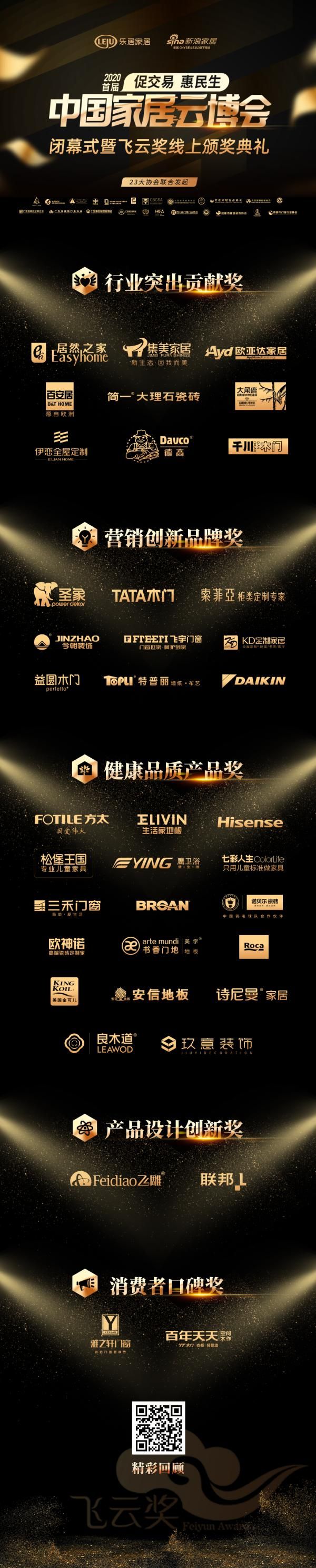 6月10日,历时45天的乐居家居首届线上家装博览会(简称“云博会”)正式落幕。同时,由云博会联手中国23家行业协会推出的飞云奖也正式揭晓。有39大家居企业分享了五大类奖项。