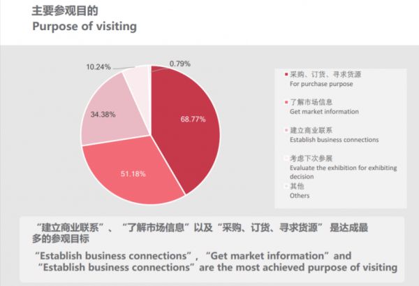 京建博会吸引了3000余家国内外企业参展,20万人次到场采购洽谈。为期4天的展会,共接待了来自中国境内26个省市自治区以及海外80多个国家和地区的采购团体。在观众大类中,40.94%为经销代理商,20.63%为建筑装饰工程公司,18.75%为建材市场/建材超市,8.44%为制造生产商,5.63%为建筑设计,5.63%为海外采购团体和房地产开发公司。“采购、订货、寻求货源”“了解市场信息”以及“建立商业联系”、是达成最多的参观目标。