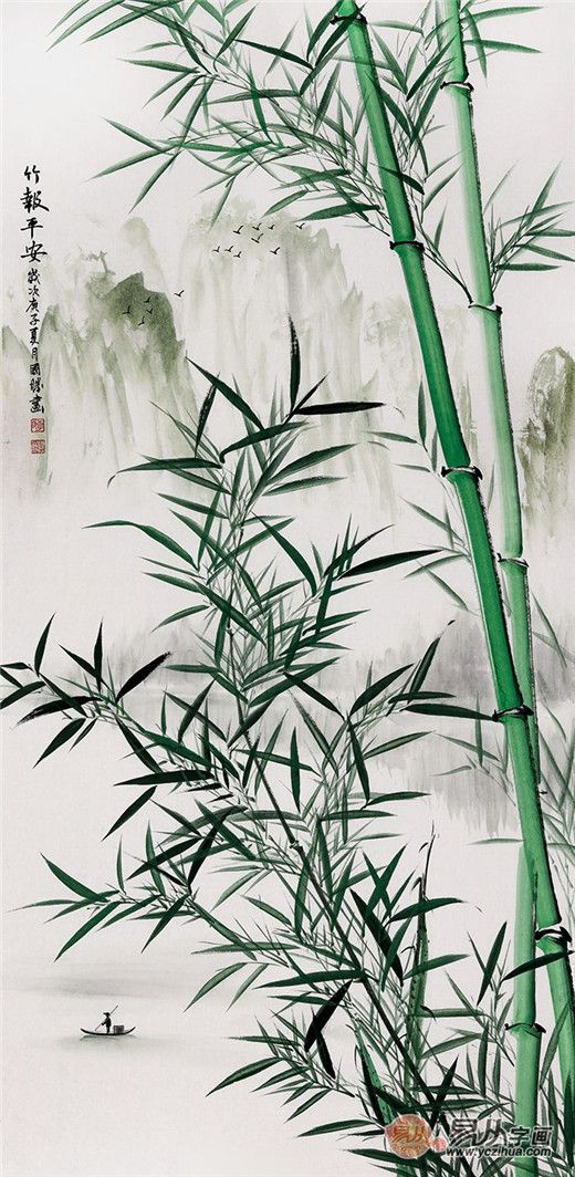 李国胜的国画竹子山水画给人一种很特别的感觉,青翠欲滴,品赏间可以很放松!自然纯美的竹林,与山水相呼应,构成了奇特、秀丽的自然景观,清新自然,赏心悦目,令人心旷神怡。瞬间想藏于山谷,匿于竹林,回归山水自然。