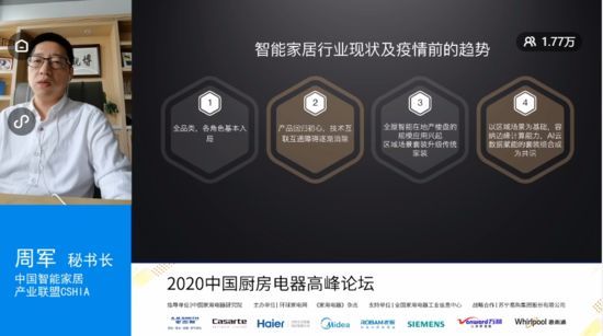 2020年6月10日,2020中国厨房电器高峰论坛于“云”上隆重开幕,由微赞、抖音、苏宁易购和一直播等平台进行全程直播。全球领先的百年家电品牌惠而浦凭借在厨电领域深厚积累的创新健康科技,荣获“健康科技品牌”大奖;其“丰”味系列微蒸烤一体机更凭借智能化、健康化的出色表现,揽得“健康智享先锋”大奖。惠而浦中国厨电及小家电销售部总监陈刚于云交流环节发表线上演讲,结合当前特殊时期厨电行业的发展趋势以及惠而浦未来的规划布局,与各位嘉宾进行“云”端交流分享。