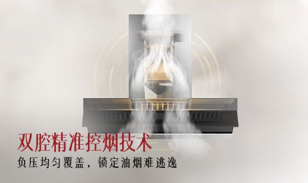 1.风力强劲,契合油烟升腾路径,拥有强大的控烟区,实现了强效控烟、双腔控烟,精准控烟;