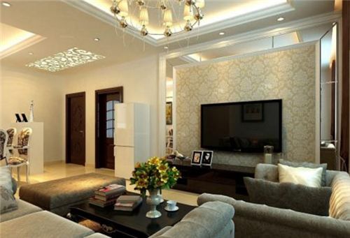 3、电视墙顶部一般都和吊顶相呼应,而吊顶上方都会安装灯饰,因此一定要多考虑墙面设计和光线的情况,还要看下强光照射到电视机上是否会对观看电视节目时眼睛会产生疲劳。