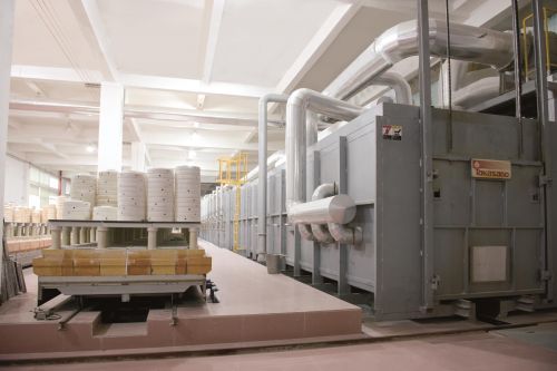 走进金鹿陶瓷的烧制车间,可以看到国内唯一的日本高砂窑炉,这种窑炉一台就需500多万元,是可以24小时不停烧制的隧道炉,好处是炉火不停歇、上下没有温差,产量大且烧制出的产品质量稳定,比传统的梭式炉每12小时就停烧、冷却、取出的过程循环,更加科学合理,而且更加环保,符合海外客户的环保要求。