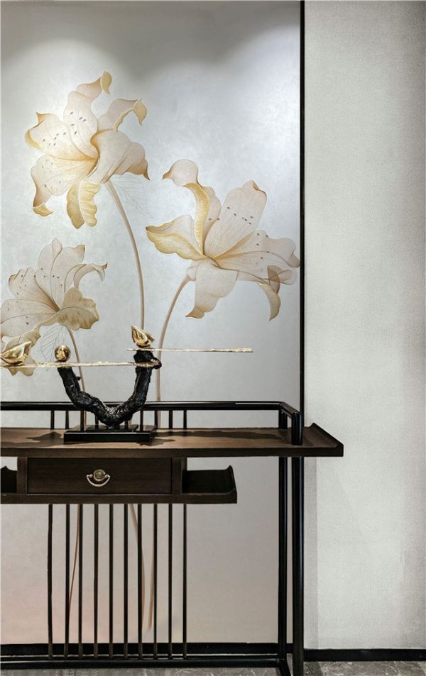 大繁至简,纯粹的诗情画意,在极简的画面之中淬炼。置身于这月色的甘凛,时刻感受“月映九微火,风吹百合香”的恬静。线条的轻笔游走,写意超然的境界,这般诗性的塑造,将百合古朴、典雅的东方之韵全面呈现。高级与圣洁的美,寄托了对爱情长久以及事业风顺的美好遐思。