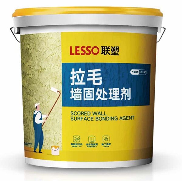 域;独有的拉毛效果,可大大提到贴砖、腻子等与水泥墙面的附着力,如联塑拉毛墙固处理剂(LS130) 。