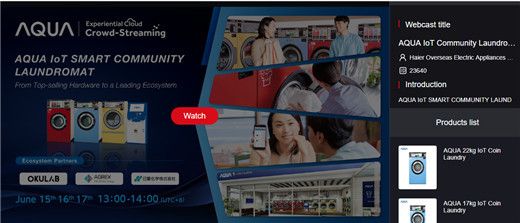 现场,海尔智家连线了日本AQUA社区洗京都自营店,邀请AQUA社区洗企划、IoT生态方、以及日本家庭主妇在共同参与体验云众播。通过现场展示的场景我们了解到,基于IOT社区洗生态平台,用户可以网上预约机器,扫描机器二维码查看衣物洗涤状况;品牌店主也可远程监控店铺运营状况,减少人员投入,增加客流量,实现经营提效。