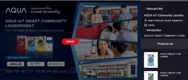 现场,海尔智家连线了日本AQUA社区洗京都自营店,邀请AQUA社区洗企划、IoT生态方、以及日本家庭主妇在共同参与体验云众播。通过现场展示的场景我们了解到,基于IOT社区洗生态平台,用户可以网上预约机器,扫描机器二维码查看衣物洗涤状况;品牌店主也可远程监控店铺运营状况,减少人员投入,增加客流量,实现经营提效。