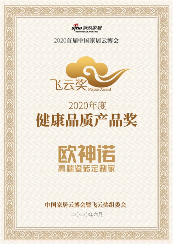 此次飞云奖是由新浪家居独家策划,联合22大协会推出6大奖项,线上全面整合传播推广,覆盖乐居家居、新浪家居50多个主流平台,触达300万精准消费人群。相信能荣获该奖项是市场和行业对欧神诺陶瓷品牌实力、产品实力的又一重要肯定。