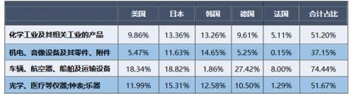 图表 1:2019年我国部分进口产品主要贸易伙伴进口额占其总进口额的比例(海关编码)