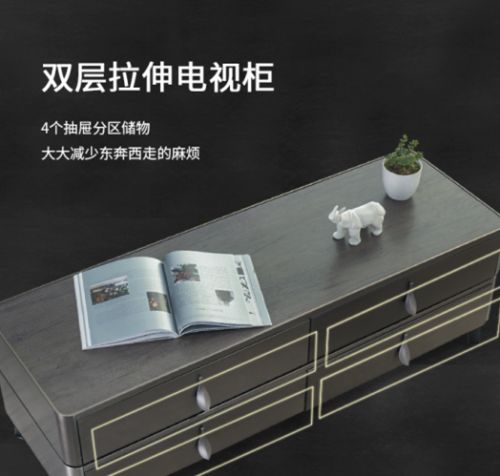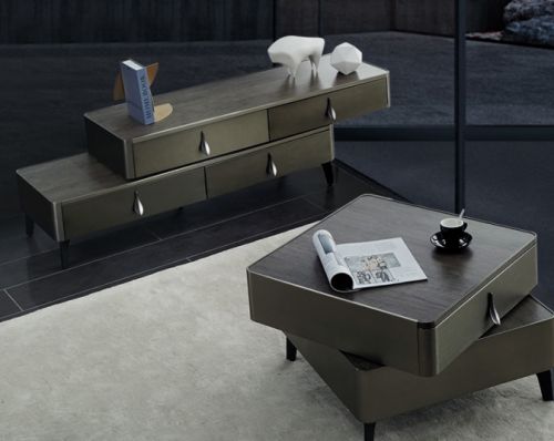 绿萝美巢铝制家居MINI系列伸缩电视柜与茶几搭配相得益彰,桌面推开效果彰显设计感与层次感,实现视觉与体验的双重享受。