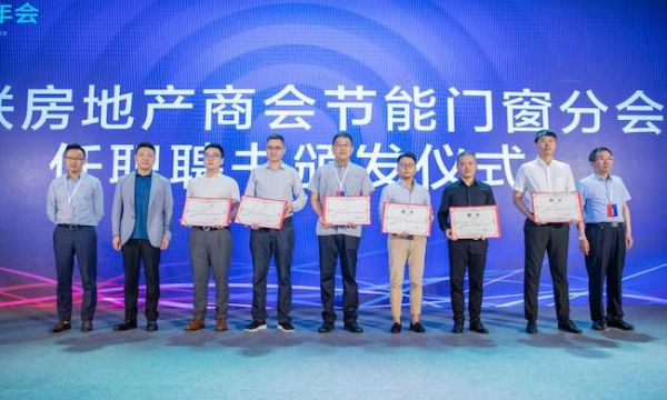 而后,会议进入全联房地产商会节能门窗分会任职聘书颁发环节,中国建筑系统门窗联盟首任轮值理事长、北京米兰之窗节能建材有限公司董事长马俊清为全联房地产商会节能门窗分会执行会长边东昱颁发聘书,中国建筑系统门窗联盟当值理事长、广东皇派家居科技有限公司董事长朱福庆为系统门窗专家委员会秘书长王盛坤颁发聘书,中国建筑系统门窗联盟执行理事长孟繁军为全联房地产商会节能门窗分会、系统门窗北大光华同学交流联谊会会长特别助理:广东坚美铝业集团董事长助理曹泽荣;广东科隆欧哲科技有限公司总经理朱建庆;佛山市旭辉五金发展有限公司(轩尼斯门窗)董事长助理曾繁汇;大洋家居江苏股份有限公司、大洋窗总经理韩旭颁发聘书。